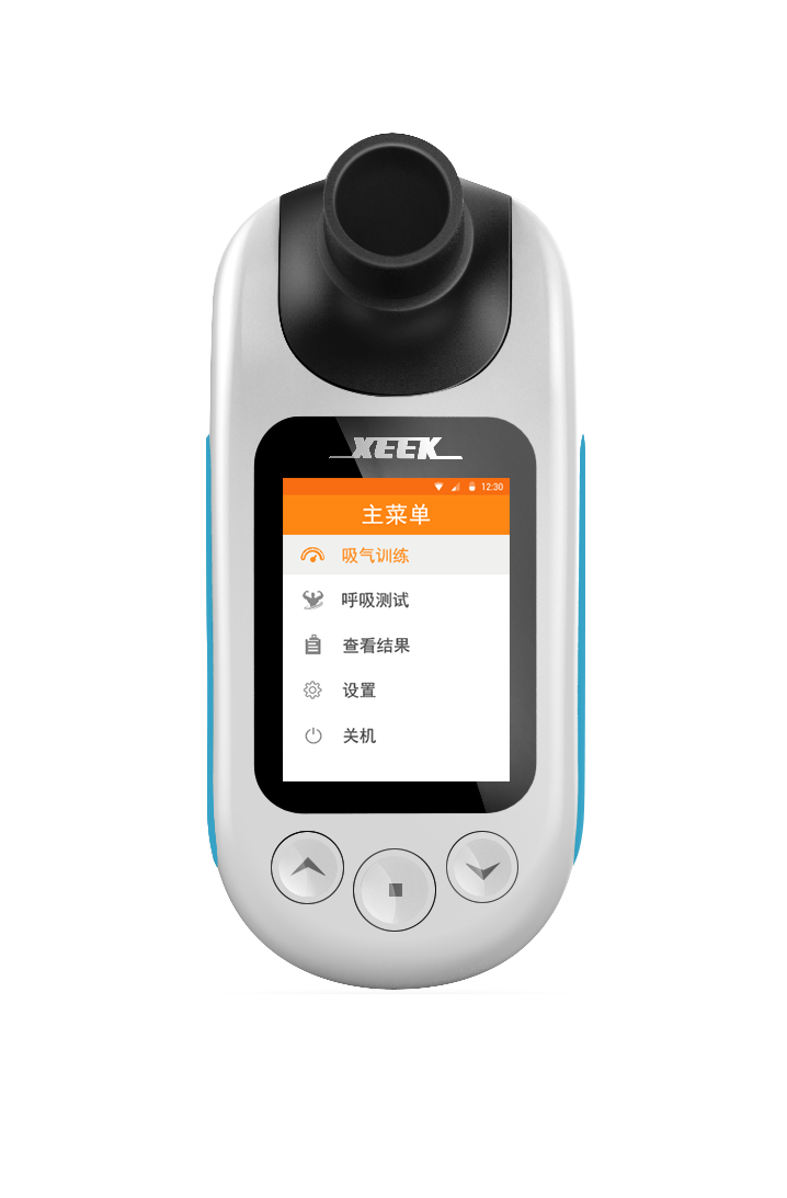 ② 呼氣檢測(cè):嘴含住呼吸過(guò)濾器,緩慢吸氣,腹部鼓起,將肺部氣體盡量充滿(mǎn),接著盡可能快速、用力的深呼氣,直到清空肺部空氣與腹部?jī)?nèi)收,至少呼氣3次。